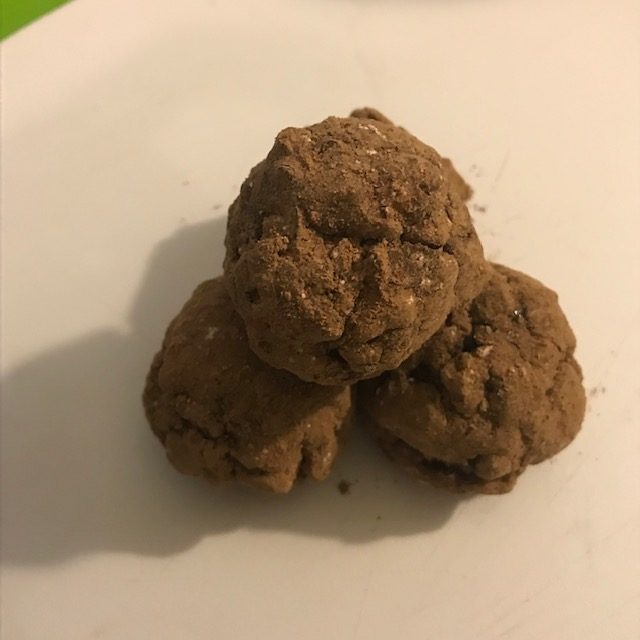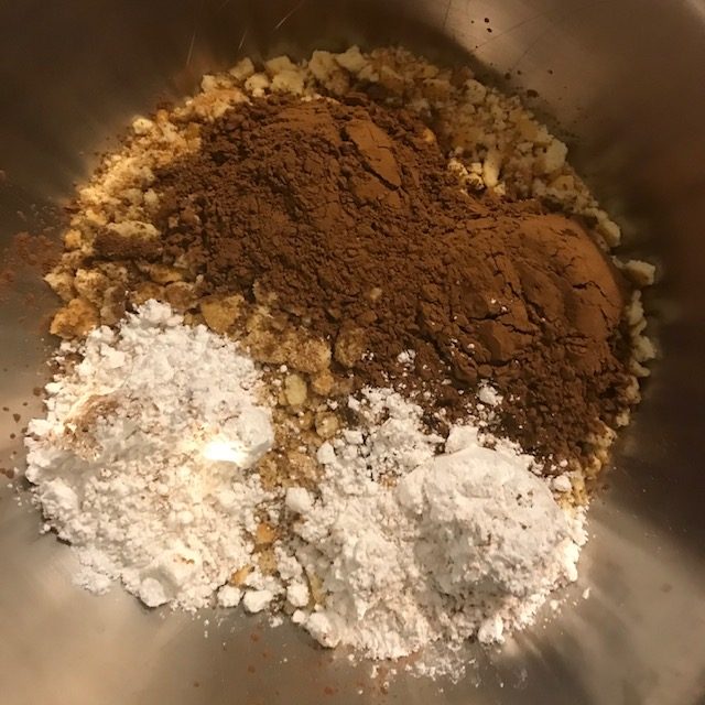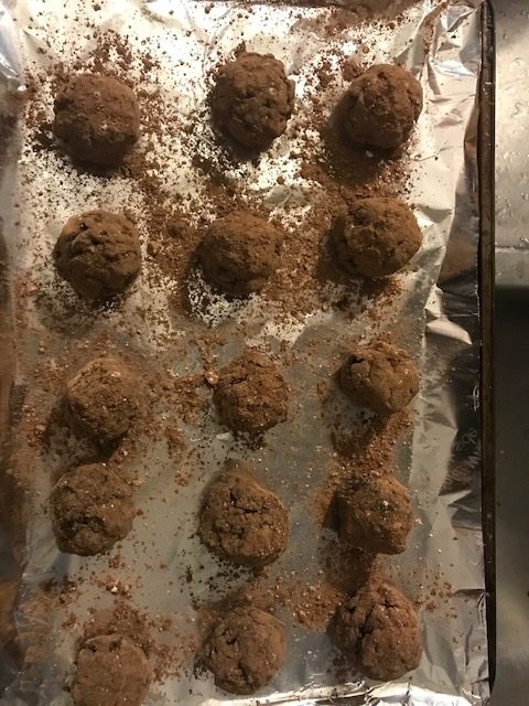 - Take a scoop and roll a ball from the large mixing bowl. Take the ball and roll it in the Coco & Powder sugar mix then place the ball on a sheet pan.