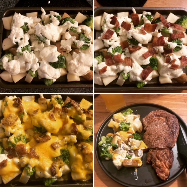 Loaded Sheet Pan Potatoes is the side you need for that next big dinner! Do you have a hankering for some potatoes with great flavor and dare I say…BACON!? Well, this is the recipe for you. Need to make this for more than 2 people well just double or triple this recipe up! Loaded Sheet Pan Potatoes is a classic tasting potato side that you can do while you prepare the main course with just a little planning a prep. Give this one a go for your next steak or Meatloaf night! Meat and Potatoes!