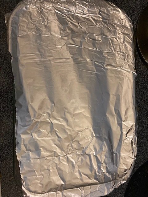 - Cover the pan with aluminum foil.