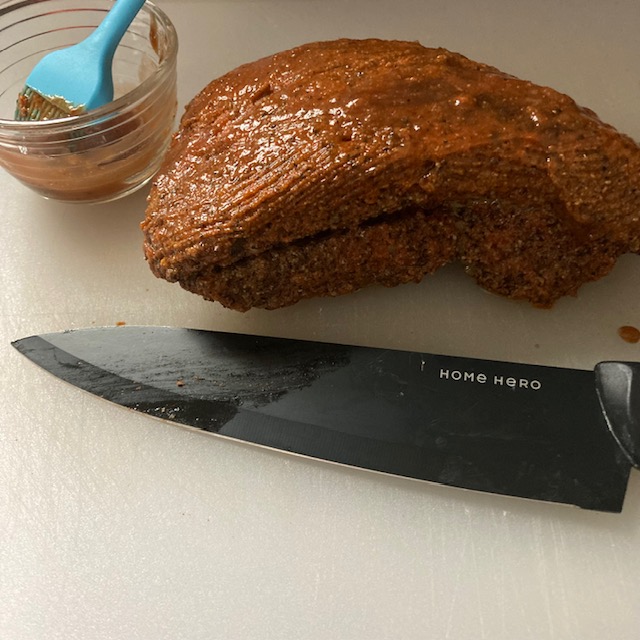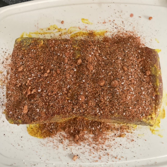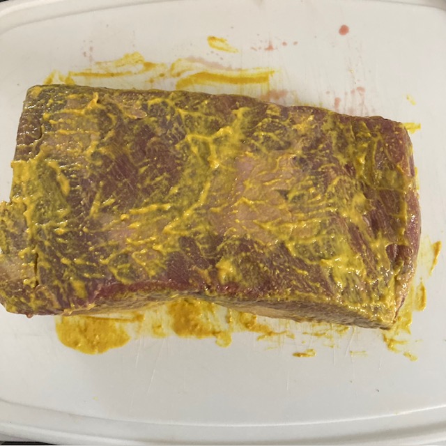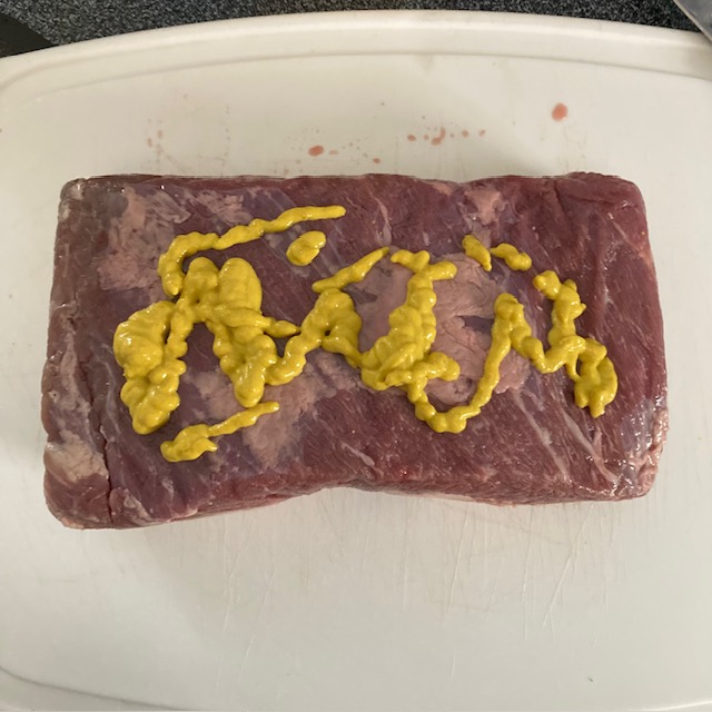 - Take your Beef Brisket and cover it with Mustard.