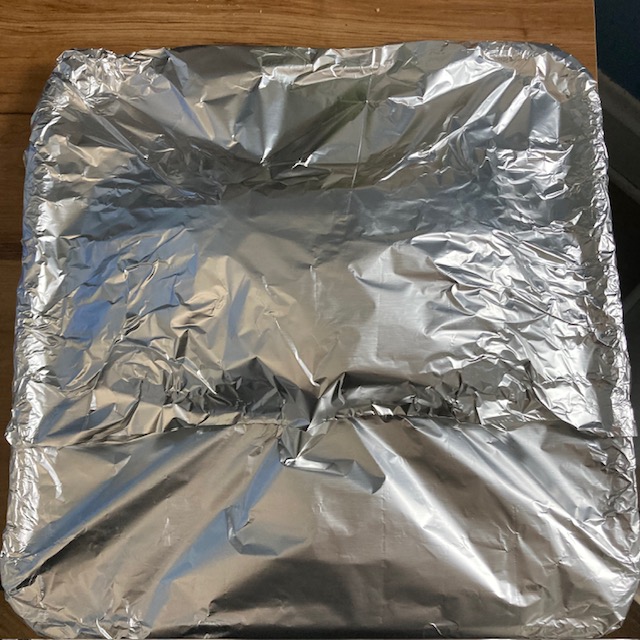 - Now cover the brisket that is on the pan with aluminum foil and be sure to seal it completely.