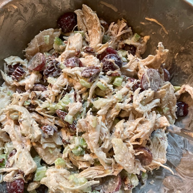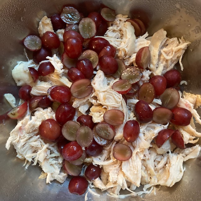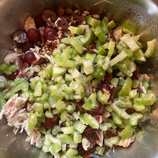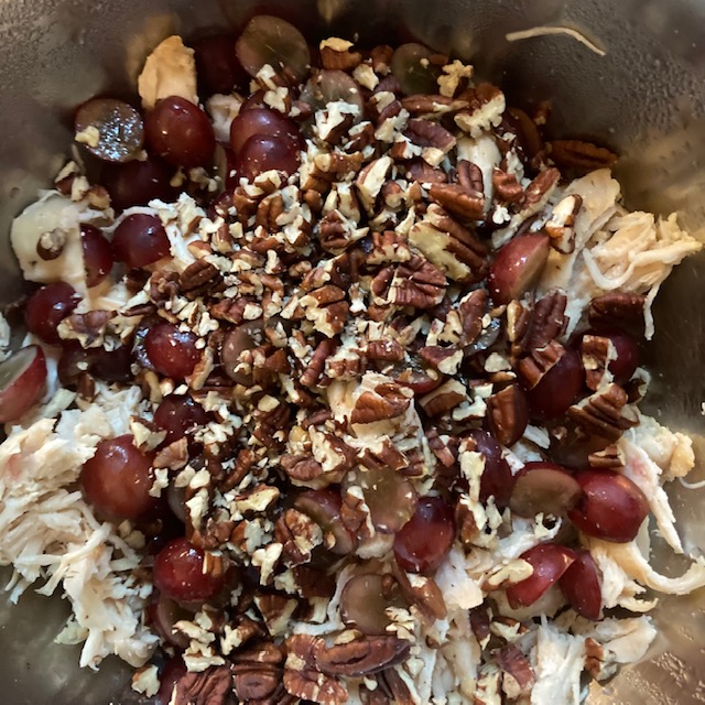 - Add in the Mayonnaise and mix all of the ingredients together to create the amazing Pecan Grape Chicken Salad.