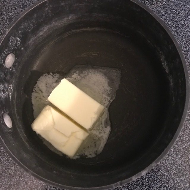- In a medium saucepan add the butter and melt it down over medium heat.