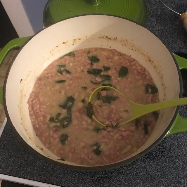 Rosemary Ham & Bean Soup is a great late fall and winter warming meal that you can do! It’s also relatively cheap to make and goes great with a sandwich or even just some buttered toast. Double the recipe and freeze some of it for later. I use a Dutch oven to make this soup, but any soup pot will work. I really like Rosemary Ham & Bean Soup and I think you will as well. Take the time to make this one you will not be disappointed.