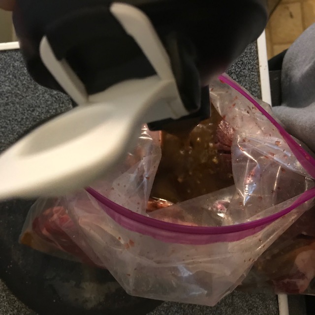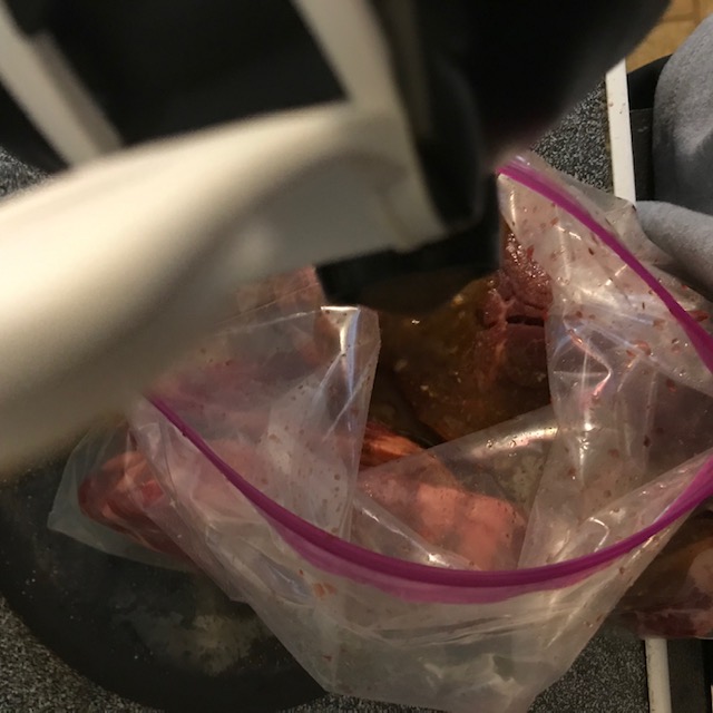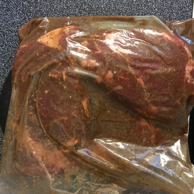 - Pour the marinade over the steaks within the bag or container.