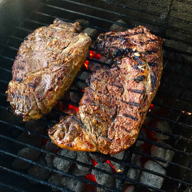 - Prepare your steak how you like. In most instances, I’ll grill my steaks on a Weber Grill. I’ll usually get the grill hot and then cook the steaks about 2 minutes to 2 and ½ minutes per side depending on the steak. To get a really good medium rare I use an instant-read thermometer to get an internal steak temperature of 130 degrees.
