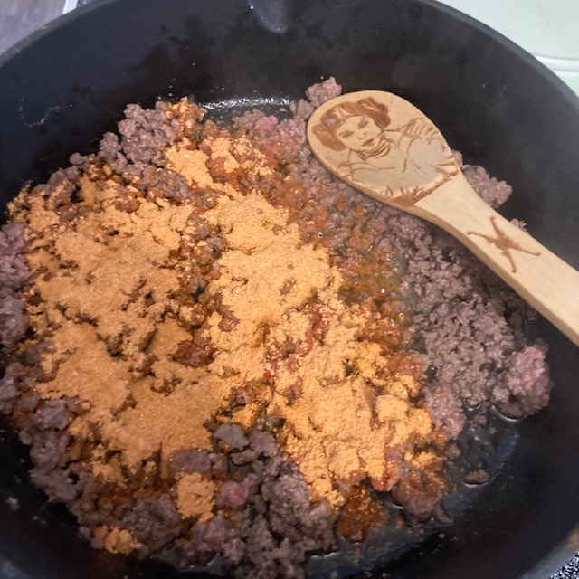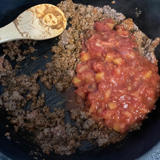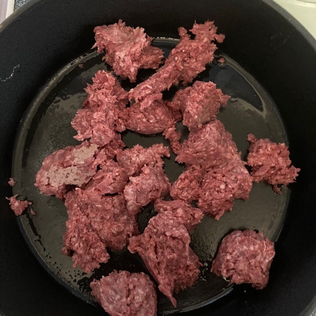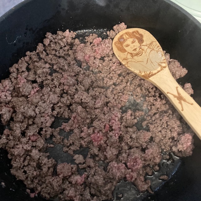 - Break up Ground Beef and cook to a brown color.
