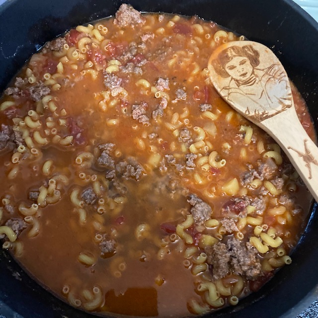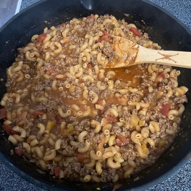 - Mix well and then add in the Water and Pasta.