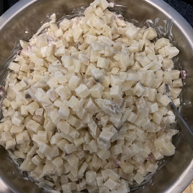 - Mix these ingredients together and then add in the Frozen Hash.