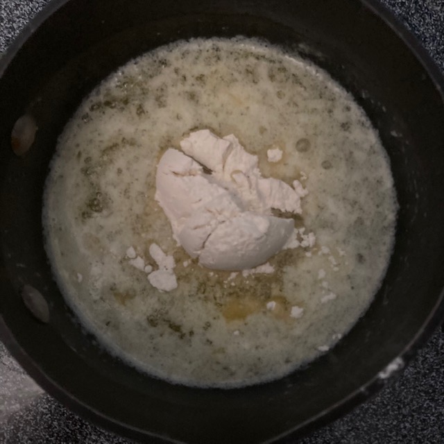 - Once the butter is mostly melted you can add in the flour.
