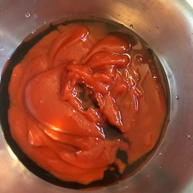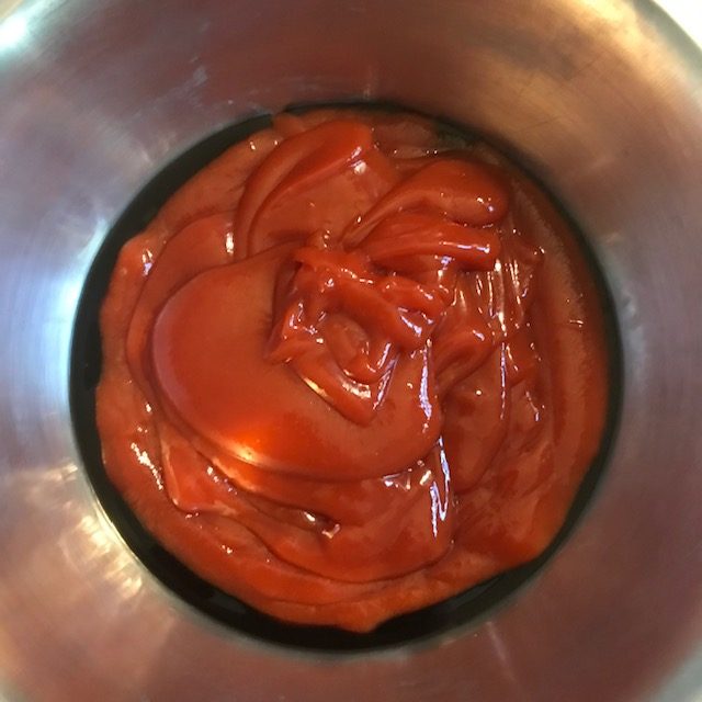 - In a bowl add in the HEINZ Ketchup, Dark Molasses, Apple Cider Vinegar, Worcestershire sauce and mix up until well blended together.