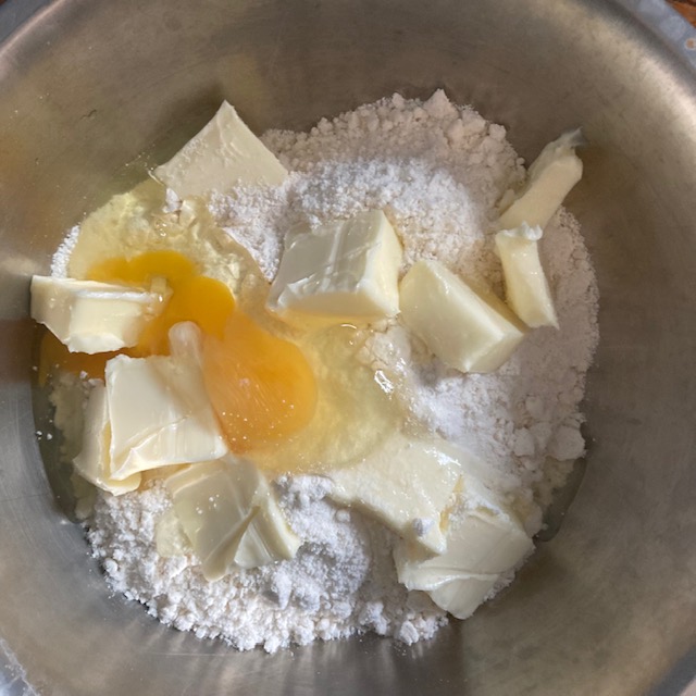 - Now add to the bowl the softened butter, egg, and water. Fold this into the cookie mix well.