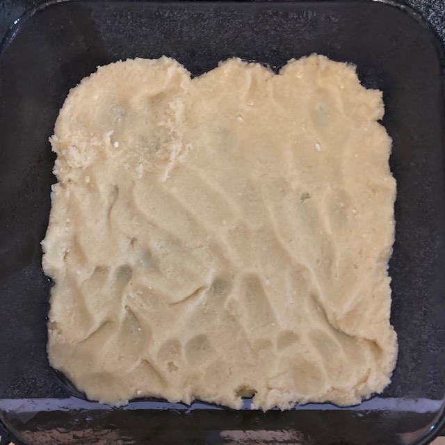 - Spread out ½ of the cookie mix on the bottom of the pan.