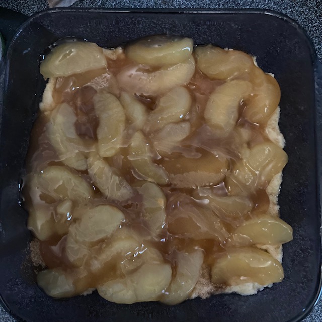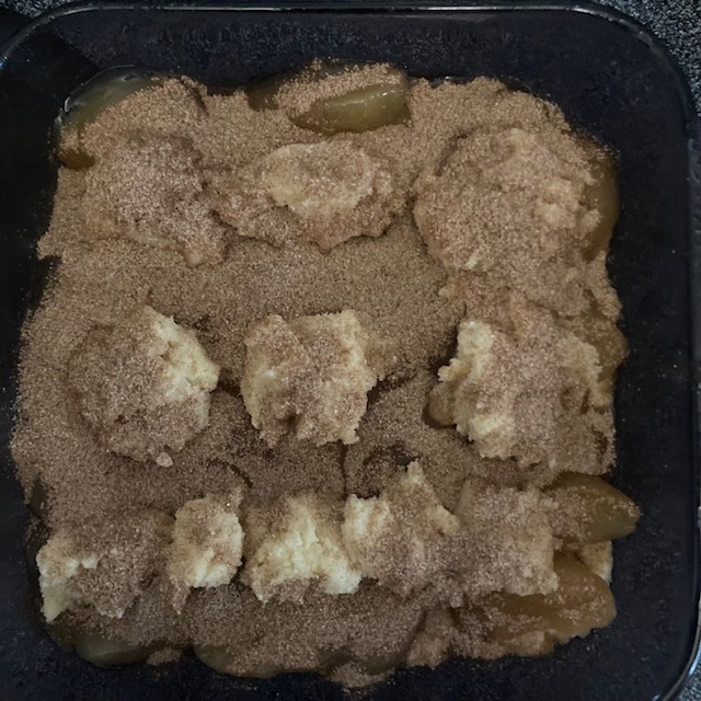 - Spoon the rest of the cookie mix on top of the apple filling.