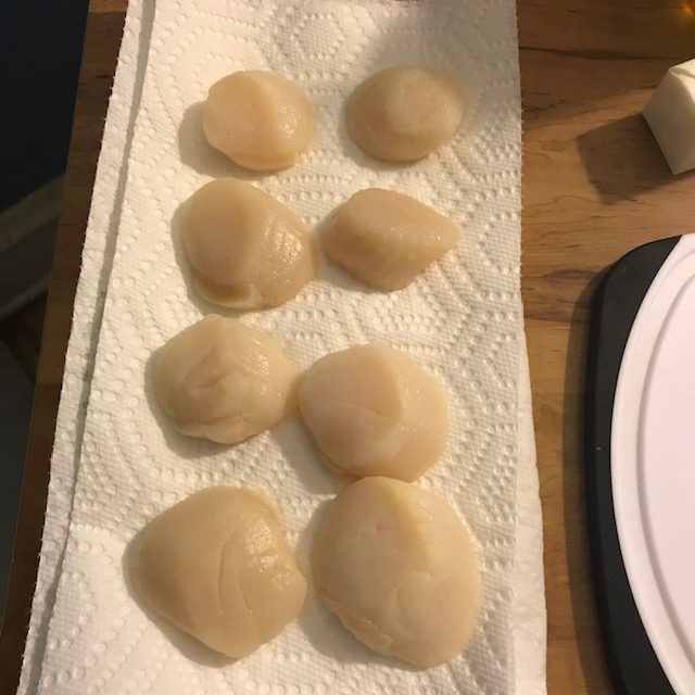 - Take your Sea Scallops out of the fridge and let them come to room temperature. This is the most important step to a good scallop. It lets the scallop cook all the way through correctly!