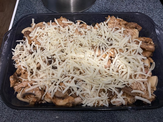 - Spread ½ of the Mozzarella to the top of the chicken.