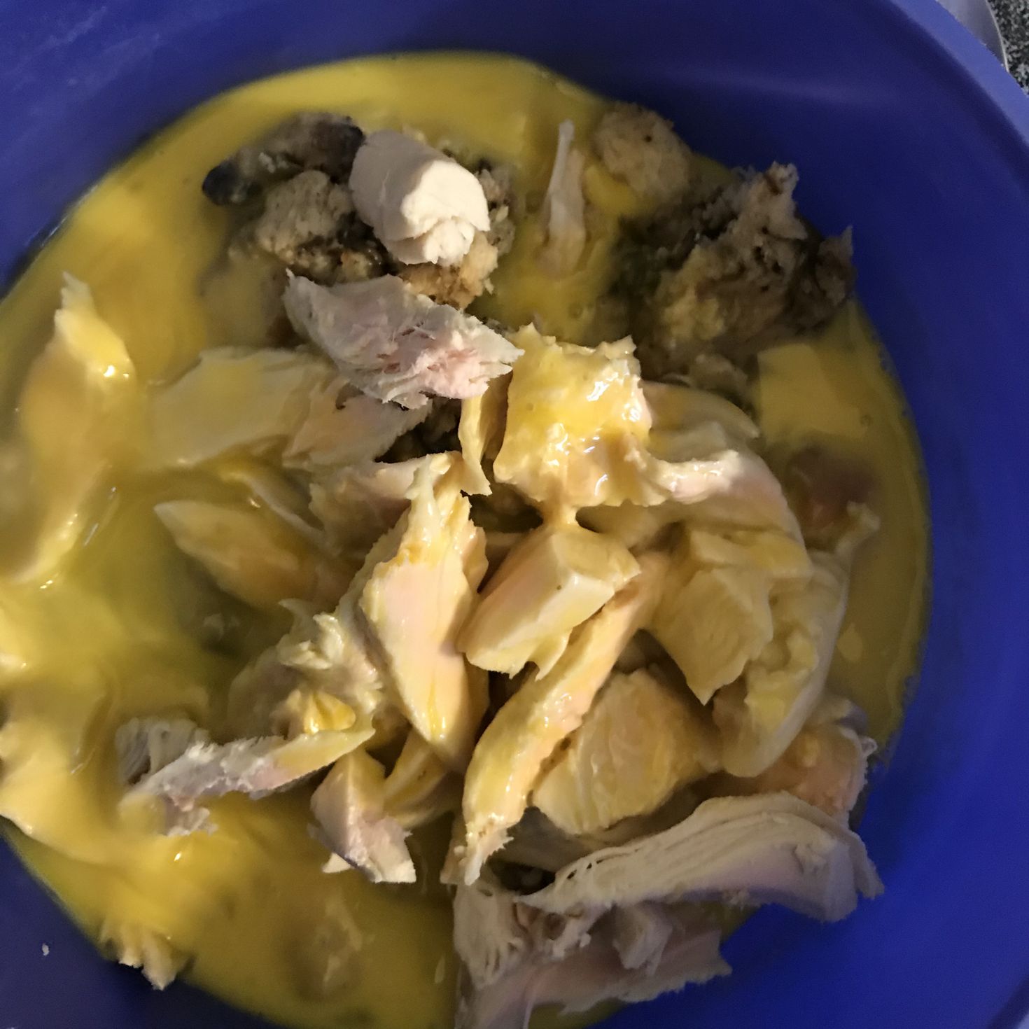 - Add the egg mix to your Turkey and Stuffing Bowl.