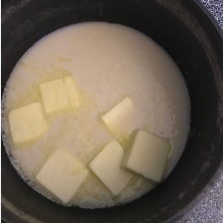 - Melt the butter and once this is completed add the milk and the powder cheese. Mix all of this together to create the sauce.