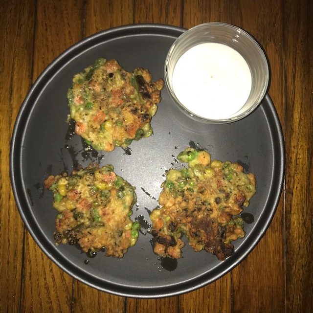 Veggie Fritters is a great and easy way to get some of those Veggies in your diet! I’ve been trying to find ways to trick myself into eating more veggies because you know they are good for you! I’m a sucker for those Bird’s eye Broccoli Tots and these Veggie Fritters are just as good if not better! Plus you can change up the Veggies for Variety! Frozen Mixed Vegetables are my go-to for this, but you cut up or shred fresh vegetables if you have the time! This recipe calls for ½ cup of Flour, but you can sub that out for other flours and even Quick Oats in a pinch. This makes about 6 to 8 fritters, so you can eat them all or save a few in the freezer and heat them up for later. Simple Veggie Fritters are great, so give them a shot and enjoy.