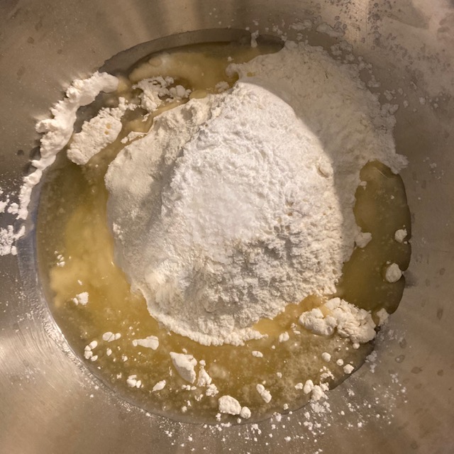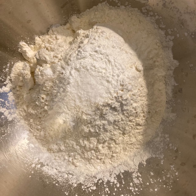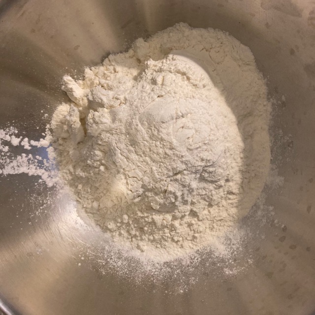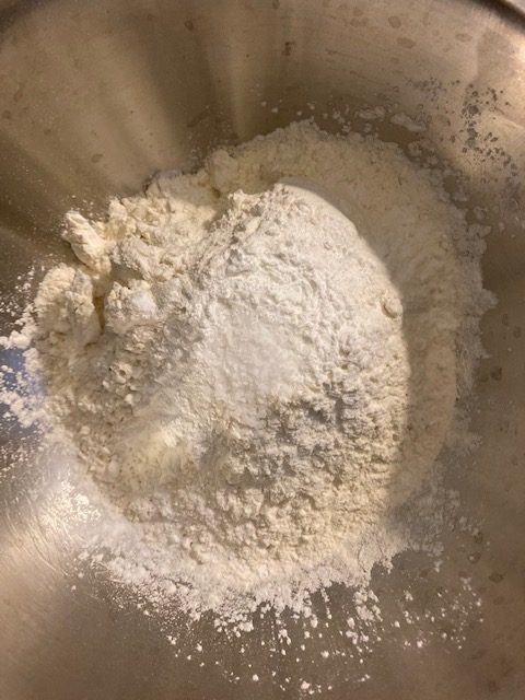 - In a medium bowl add in your flour, baking powder, and salt.